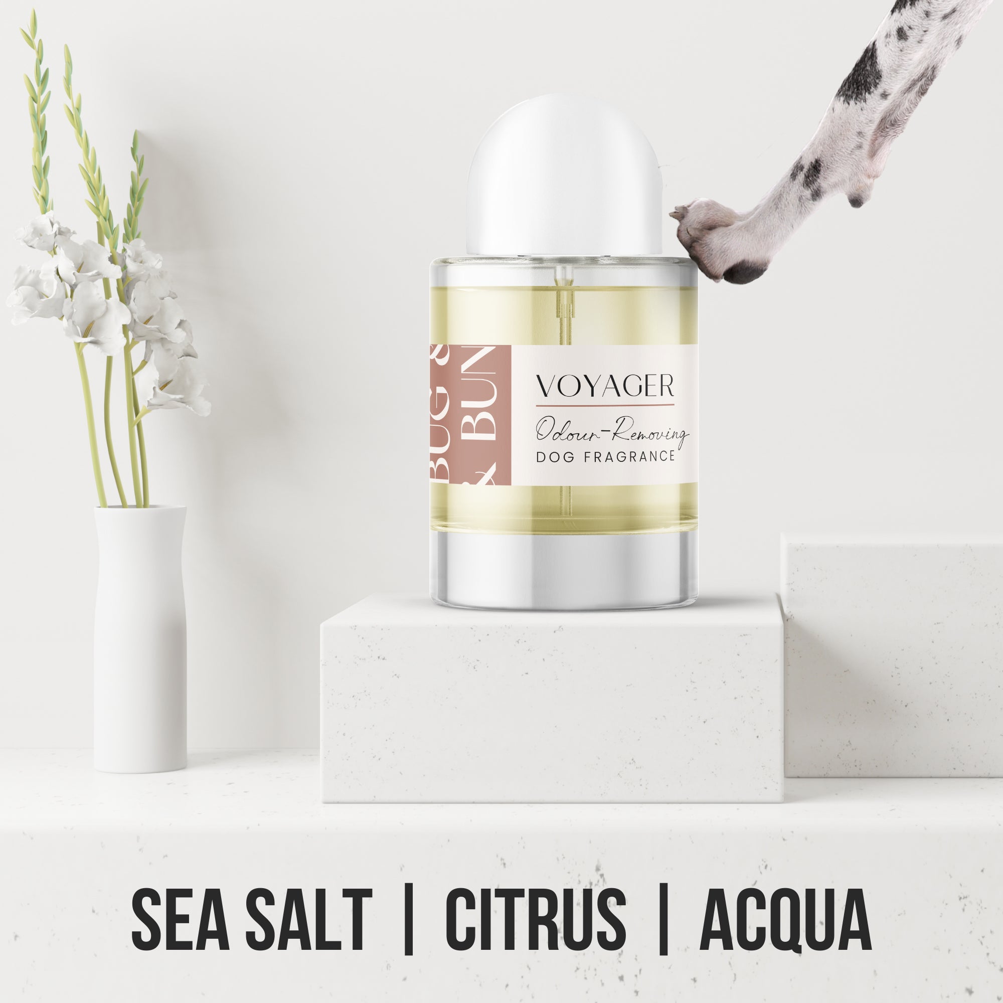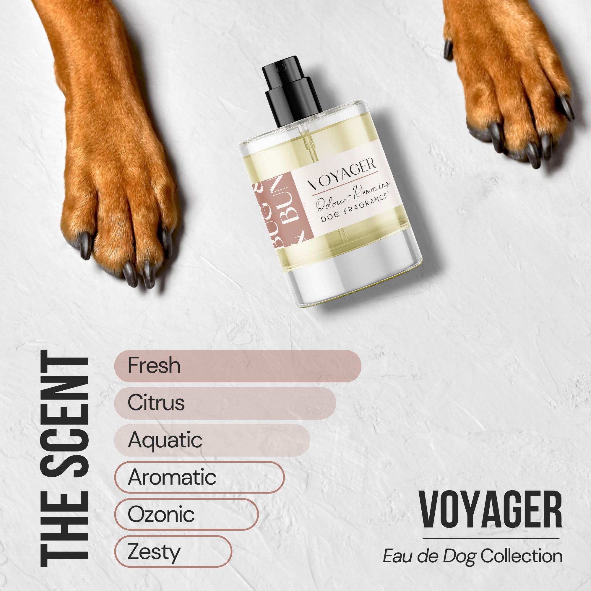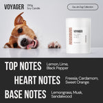 A fresh, coastal-inspired scent, Voyager captures the feeling of salty wind in your hair, warm sand underfoot, and the joyful bond shared with your dog by the sea.