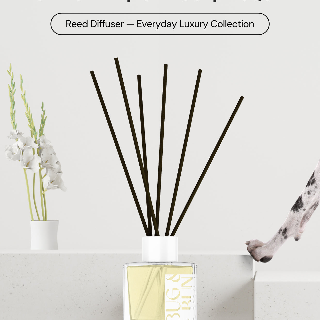 Our in-house perfumer dedicated over 12 months to formulating Bug & Bun’s range of fragrances for hounds and home, conducting extensive research on dog-specific essential oil and fragrance safety.