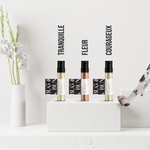 Courageux – A bold yet balanced blend of Frankincense, Himalayan Cedarwood, Clary Sage, Sweet Orange, and dog-friendly Bergamot. Zesty and rejuvenating—crafted to help support focus and confidence.