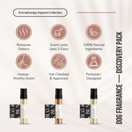 Inside this on-the-go 'Aromatherapy Inspired' Discovery Pack, you’ll find three of our 100% Natural Dog Fragrances in perfectly portable 3ml vials—each designed for their aromatherapy-inspired benefits—helping create a sense of calm, rejuvenation, and emotional balance.