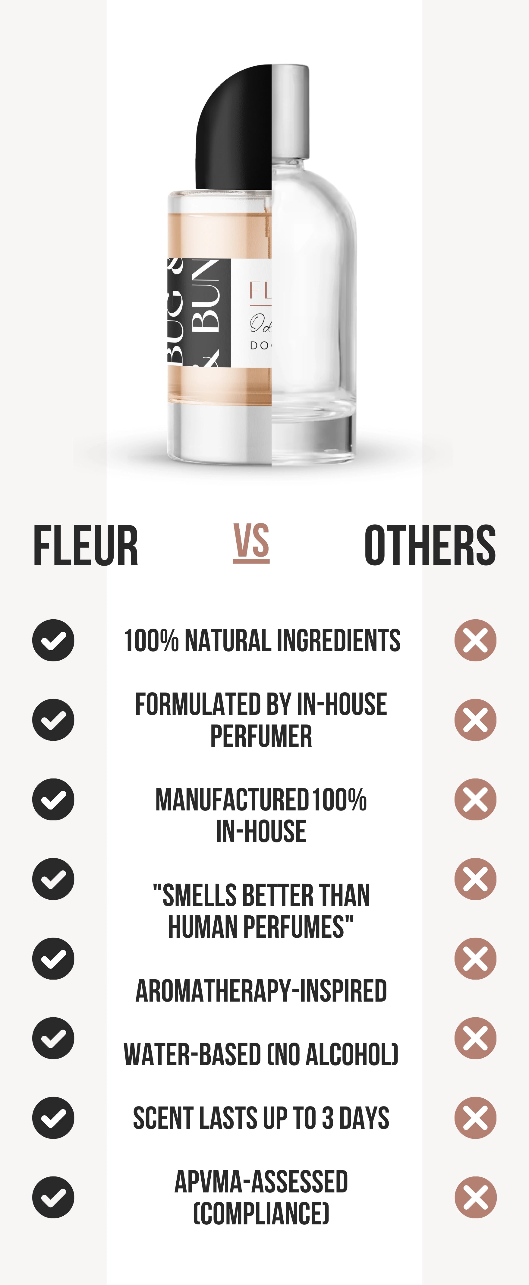 Fleur 'Aromatherapy Inspired' is designed with dog-friendly essential oils renowned for instilling a sense of calm, relaxation, and luxury in your furry friend.